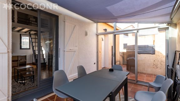 Situé au 1er étage d'une petite résidence (accessible par escaliers), cet appartement avec mezzanine de 49 m² peut accueillir de 1 à 6 personnes. L'accès se fait par la véranda (17 m²), où vous pourrez prendre vos repas si vous le souhaitez.