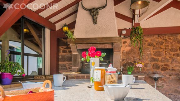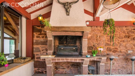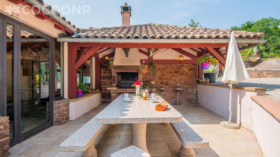 - Une terrasse avec un espace barbecue de 35 m² en pierres couvert avec 2 chaufferettes mobiles
