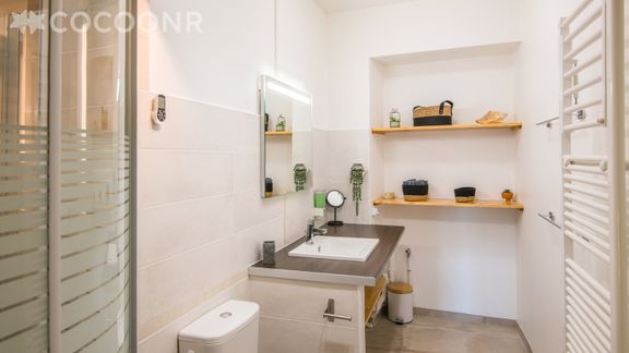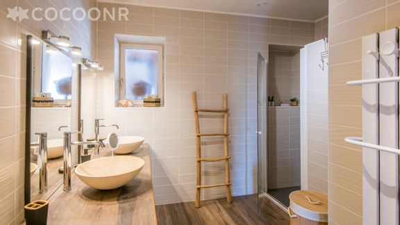 - Deux salles d'eau avec douche, double vasques, rangements, machine à laver, sèche linge et douche à l’italienne