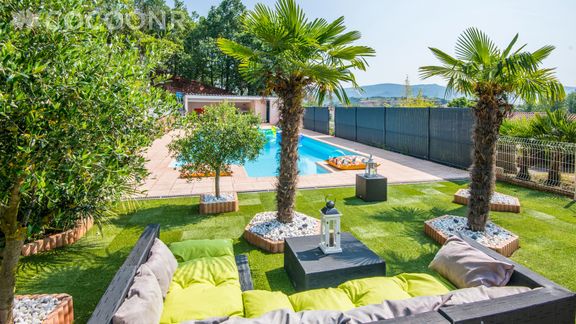 - Un jardin arboré et fleuri et vue panoramique de 1200 m² avec mobilier pour profiter des beaux jours