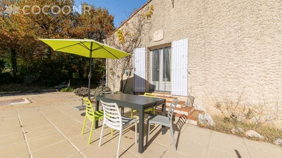 L'Agence Cocoonr/Book&Pay vous propose à la location, sur la commune de Montmeyan, cette charmante maison avec piscine, d’une superficie de 140 m² et pouvant accueillir jusqu’à 8 voyageurs. Elle est composée d’une jolie pièce à vivre de 43 m² (avec cheminée), d'une cuisine équipée, de quatre belles chambres, deux salles de bain (avec douche et baignoire) et vous pourrez profiter d’un jardin d’environ 2 000 m².