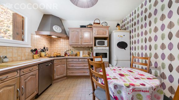 - Une cuisine équipée avec notamment : bouilloire électrique, four, four à micro-ondes, grille-pain, lave-vaisselle, plaques de cuisson...