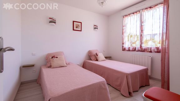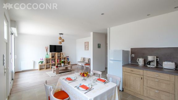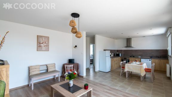 L'Agence Cocoonr/Book&Pay vous propose, à Montreuil-Bellay, cette charmante maison de plain-pied d’une superficie de 61 m² et pouvant accueillir jusqu’à 5 voyageurs. Elle est composée d’une jolie pièce à vivre de 24 m², cuisine ouverte équipée, de deux belles chambres, une salle de bain et vous pourrez profiter de deux terrasses (28m² et 32m²) devant la cuisine et le salon. Wifi inclus, nous n’attendons plus que vous !