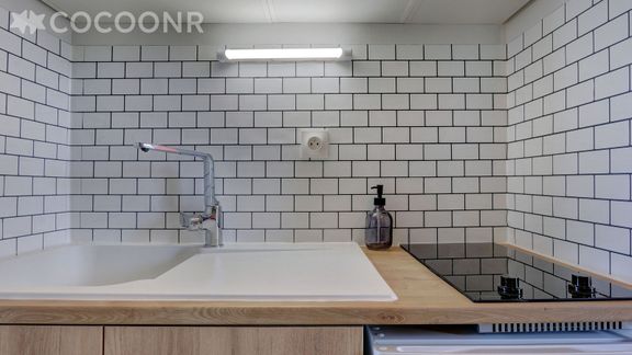 - Une cuisine équipée avec notamment : bouilloire électrique, four à micro-ondes, grille-pain, plaques de cuisson...