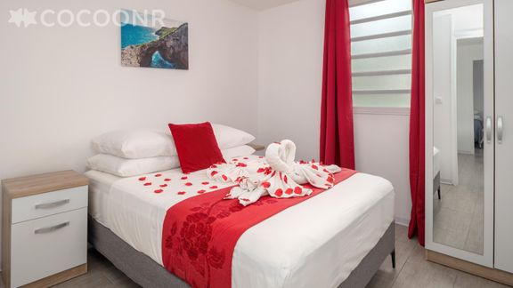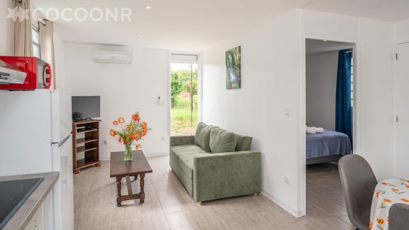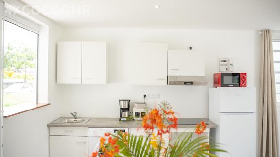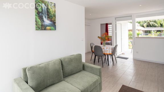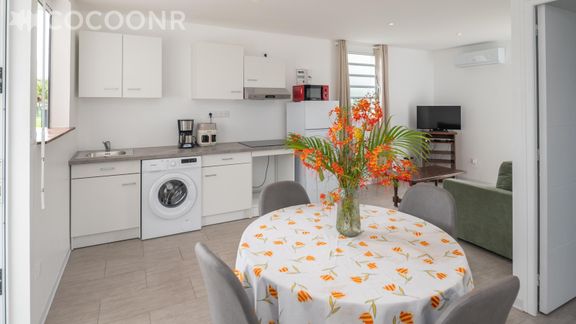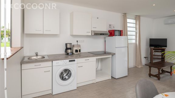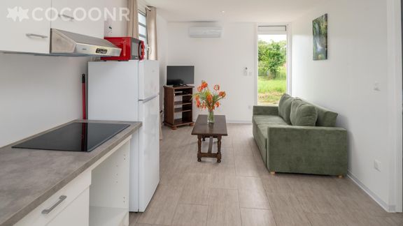 L'agence Cocoonr/Book&Pay vous propose, à Morne-à-l'Eau, cette charmante maison climatisée d’une superficie de 45 m² et pouvant accueillir jusqu’à 4 voyageurs. Elle est composée d’une pièce à vivre de 10 m², d'une cuisine ouverte équipée, de deux belles chambres, d'une salle d'eau (avec douche) et vous pourrez profiter d’un jardin d’environ 60 m². Wifi, draps et serviettes inclus, nous n’attendons plus que vous !