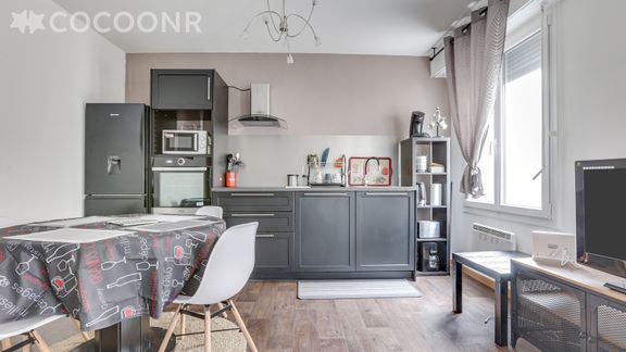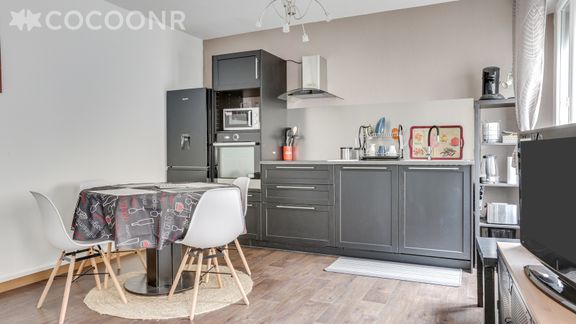 Vous disposerez ainsi d'une belle pièce de vie lumineuse avec un coin salon doté d'un canapé-lit, d'un espace repas, d'une cuisine entièrement équipée, d'une chambre et d'une salle d'eau !