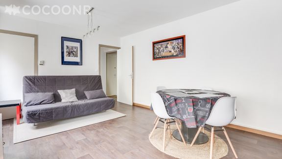 - Une belle pièce de vie lumineuse avec un coin salon doté d'un canapé-lit et d'une TV ainsi qu'un espace repas avec une table à manger pouvant accueillir jusqu'à 4 convives.