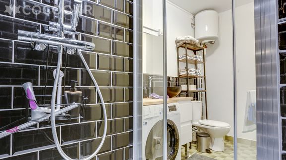 - Une salle d'eau avec une douche, une vasque, un sèche-cheveux, du gel douche et/ou shampoing et un WC.