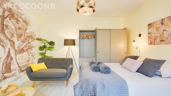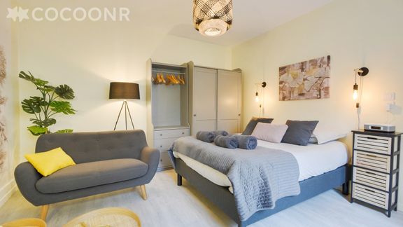 L'appartement de type 1 en forme de L, au calme et sans vis à vis, est idéalement situé entre la magnifique place Stanislas, le musée des Beaux Arts, l'Opéra, le parc de la pépinière, la cathédrale, et le jardin d'eau.
