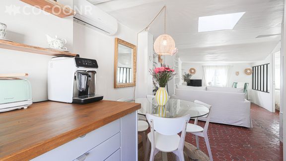 - La pièce principale est ouverte sur le salon, la cuisine et la salle de bain, celle-ci bénéficie de la climatisation