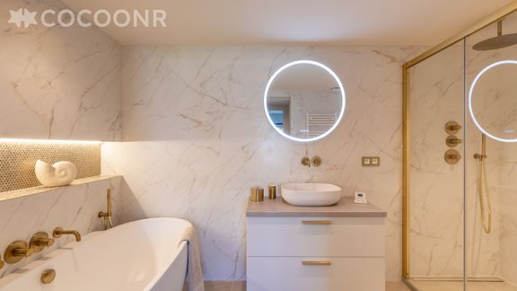 - Une salle de bain commune aux 2 autres chambres : avec une baignoire, une douche ainsi qu'une vasque