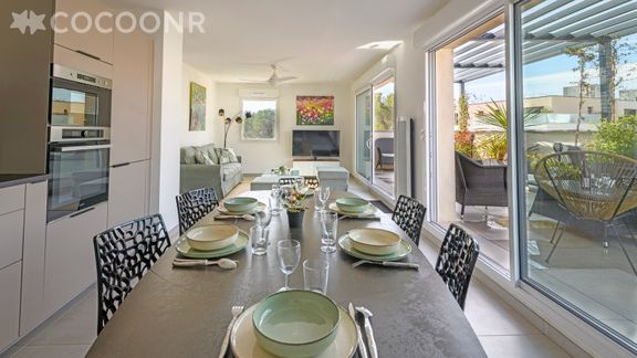 L'agence Cocoonr/Book&Pay vous propose à la location, à Nîmes, ce charmant appartement d’une superficie de 100 m² et pouvant accueillir jusqu’à 6 voyageurs. Situé au 3e étage (avec ascenseur), il se compose d’une jolie pièce à vivre de 30 m², d'une cuisine équipée, de trois belles chambres et de deux salles de bain (avec douche et baignoire). Wifi (fibre optique), draps et serviettes inclus, nous n’attendons plus que vous !