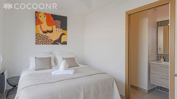 - Chambre 1 : un lit king-size (180×200) et sa salle d'eau avec douche attenante