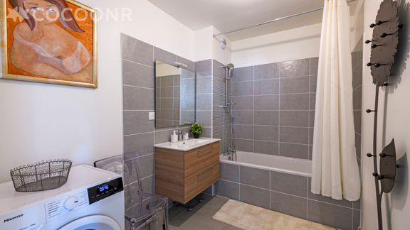 - Une salle de bain avec baignoire