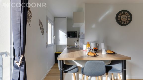 L'agence Cocoonr/Book&Pay vous propose à la location, à Noyal-Châtillon-sur-Seiche, ce charmant studio d’une superficie de 25 m² et pouvant accueillir jusqu’à 2 voyageurs. Situé au 1er étage (sans ascenseur), il se compose d’une jolie pièce à vivre de 19 m², d'une cuisine équipée et d'une salle d'eau. Wifi (fibre optique), draps et serviettes inclus, nous n’attendons plus que vous !