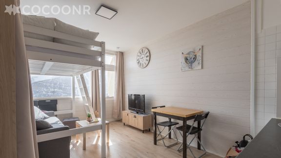 L'agence Cocoonr/Book&Pay vous propose à la location, à Orcières, ce charmant studio d’une superficie de 20 m², tout équipé et pouvant accueillir jusqu’à 4 voyageurs. Situé au 1ᵉʳ étage (sans ascenseur), il se compose d’une jolie pièce à vivre de 17m², d’une cuisine équipée, d’une salle d’eau avec WC ainsi qu’un balcon avec vue sur les montagnes pour profiter des beaux jours.