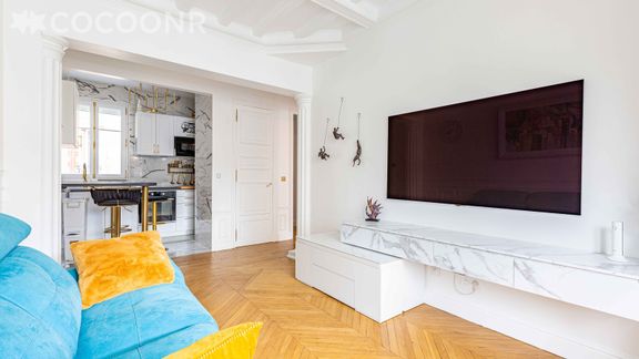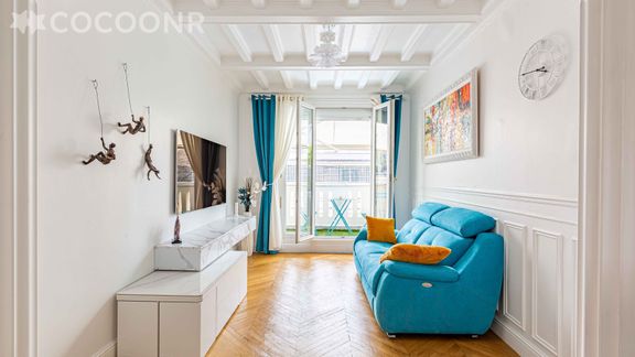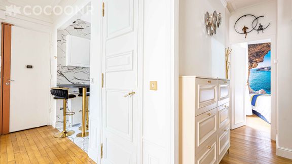L'agence Cocoonr/Book&Pay vous propose à la location, dans le 16ème arrondissement de Paris, ce charmant appartement haussmannien climatisé, d’une superficie de 50 m² et pouvant accueillir jusqu’à 3 voyageurs. Situé au 5e étage (avec ascenseur) d'un immeuble de caractère, il se compose d’une jolie pièce à vivre avec une cuisine ouverte tout équipée, de deux belles chambres, d'une salle d'eau et de WC indépendants. Wifi (fibre optique), draps et serviettes inclus, nous n’attendons plus que vous pour un séjour inoubliable dans la capitale !
