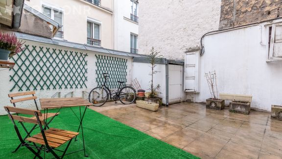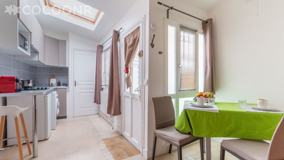 Le logement donne sur une petite cour de 10m², exposé nord-est, avec table et chaises pour profiter des beaux jours.