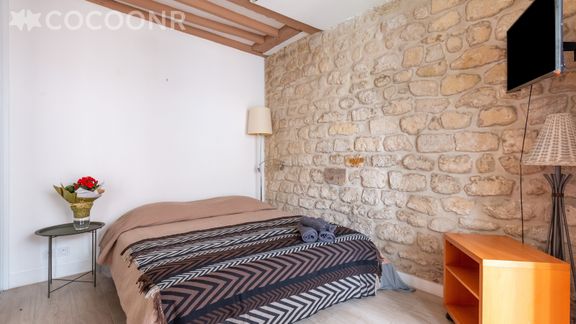 - Un coin nuit avec lit queen-size (160x200), TV et rangements