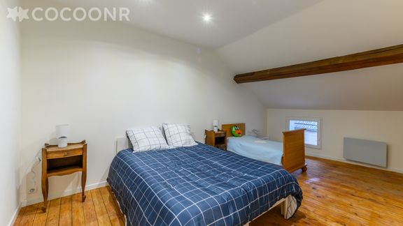 - Chambre 1 : un lit double (140x190), un lit simple (90×200) et un lit d'enfant