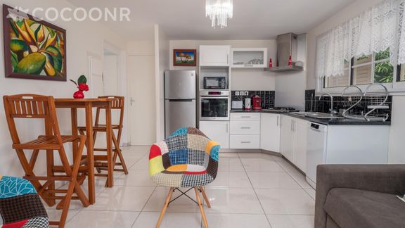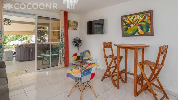 L'agence Cocoonr/Book&Pay vous propose à la location, à Petit-Bourg, cet appartement d'une superficie de 40 m² et pouvant accueillir jusqu'à 2 voyageurs. Il est composé d'une pièce de vie de 20 m², d'une cuisine entièrement équipée, d'une chambre et d'une salle d’eau avec douche. Une dépendance d'une superficie de 13 m² est également mise à votre disposition pouvant accueillir jusqu'à 2 voyageurs. Elle est composée d'une chambre et d'une salle d'eau. Vous pourrez également profiter d’un grand jardin arboré d’environ 1 000 m² et d'un jacuzzi, parfait pour se détendre. Le logement est équipé du wifi par fibre optique. Les draps et serviettes sont fournis, nous n'attendons plus que vous !