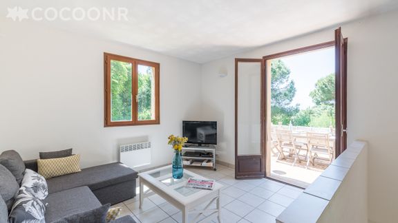 - Un coin salon lumineux avec un canapé d'angle convertible en canapé-lit pour 1 personne, une table basse, une TV et lecteur DVD ainsi d'un accès à la terrasse !