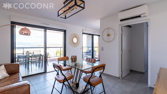 Laissez vous tenter par une escapade sur l'île de beauté, entre mer et collines, dans la charmante ville de Pietrosella. A proximité d'Ajaccio et des splendides paysages de la presqu'île d'Isolella, cet appartement de 58 m² est l'endroit idéal pour une escapade en famille ou entre amis (4 adultes et 2 enfants ou 2 adultes et 4 enfants).