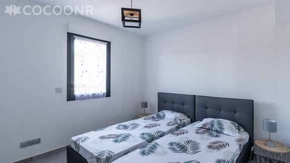 Avec sa belle terrasse avec vue mer et confortablement aménagée, laissez-vous tenter par un bon repas face au coucher du soleil ! Vous disposerez aussi d'une pièce de vie lumineuse avec un coin salon et un espace repas, une cuisine entièrement équipée, de deux chambres et d'une salle d'eau !