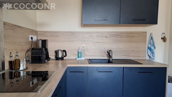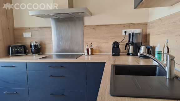 - Une cuisine séparée et équipée avec notamment : bouilloire électrique, grille-pain, four à micro-ondes, four, plaques de cuisson, lave-vaisselle, cafetière à dosettes Nespresso...