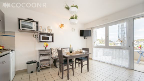 L'agence Cocoonr/Book&Pay vous propose à la location, à Pléneuf-Val-André, ce studio avec vue port, d’une superficie de 20 m² et pouvant accueillir jusqu’à 2 voyageurs. Situé au rez-de-chaussée, il se compose d’une pièce à vivre de 20 m², d'une kitchenette équipée, et d'une salle de bain (avec baignoire).