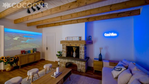 - Un vidéoprojecteur avec accès à Netflix, Canal+ et d'autres services de streaming dans le salon pour des moments de détente,