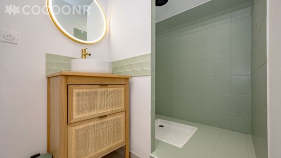 - Chambre 2 : un lit double (140x190) avec rangements, salle d'eau attenante avec douche, meuble vasque