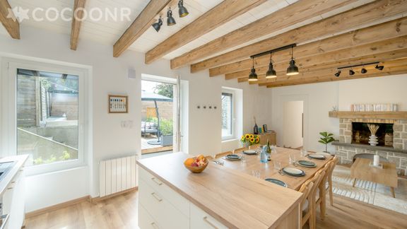 L'agence Cocoonr/Book&Pay vous propose à la location cette maison 111 m², dans un cadre paisible, juste au-dessus du Port du Légué dans la commune de Plérin. Entièrement rénovée, cette charmante bâtisse bretonne allie confort moderne et authenticité. Située au cœur de la baie de Saint-Brieuc, à proximité des commodités, elle vous offre un havre de tranquillité pour des séjours en famille ou entre amis. Cette maison peut accueillir jusqu’à 10 personnes, elle comprend un salon convivial de 30 m² avec cheminée, une cuisine équipée, quatre chambres confortables et quatre salles d'eau avec douche. Connexion Wifi via fibre optique, draps et serviettes fournis. Il ne manque plus que vous !