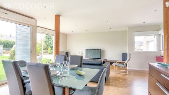 L'Agence Cocoonr/Book&Pay vous propose à la location, sur la commune de Plévenon, cette charmante maison de plain-pied à un kilomètre de la plage de Château Serein, d’une superficie de 165 m² et pouvant accueillir jusqu’à 6 voyageurs. Elle est composée d’une pièce à vivre de 70 m², cuisine ouverte équipée, de trois chambres, deux salles d'eau (avec douche) et vous pourrez profiter d’un jardin d’environ 900 m².