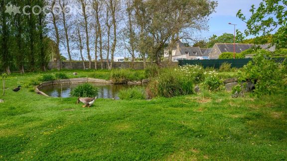 - Portail électrique. Au bout du jardin, 1000m² de jardin supplémentaire fermé au public et partagé avec les autres logements de la résidence, comportant des canards, oies, cygnes noirs et dendrocygninae qui ont accès à une mare.