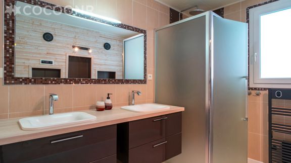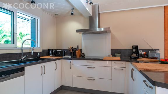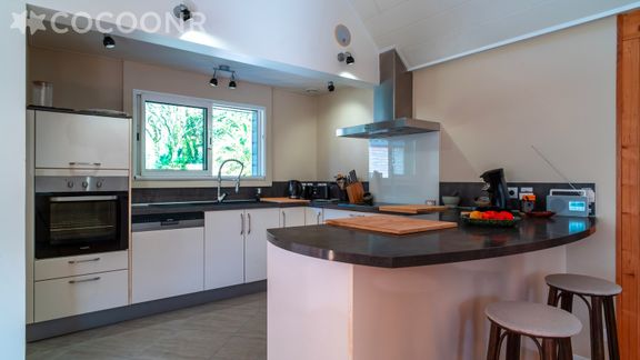 - Une cuisine équipée avec notamment : bouilloire électrique, four, four à micro-ondes, grille-pain, lave-vaisselle, plaques de cuisson...