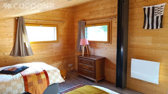 À l'extérieur, vous aurez également à disposition une chambre cabane séparée à moins de 10 m de la maison avec 2 lits simples.