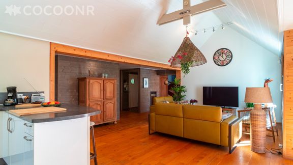 - Une pièce de vie de 50 m² avec TV, canapé...