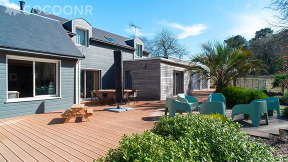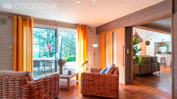 L'agence Cocoonr/Bookandpay vous propose à la location, à Plouay, cette charmante maison avec piscine, d’une superficie de 250 m² et pouvant accueillir jusqu’à 12 voyageurs. Elle est composée d’une jolie pièce à vivre de 50 m², d'une cuisine équipée, de cinq belles chambres, deux salles d'eau (avec douche) et vous pourrez profiter d’un jardin d’environ 1 500 m². Wifi (fibre optique) inclus, nous n’attendons plus que vous !
