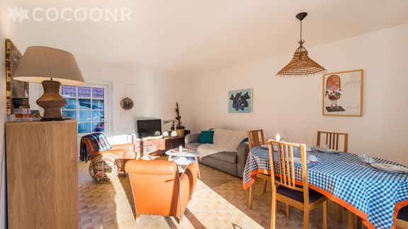 - Une pièce de vie de 22 m² avec TV, canapé-lit double (140×190) et coin repas