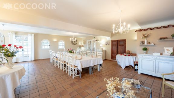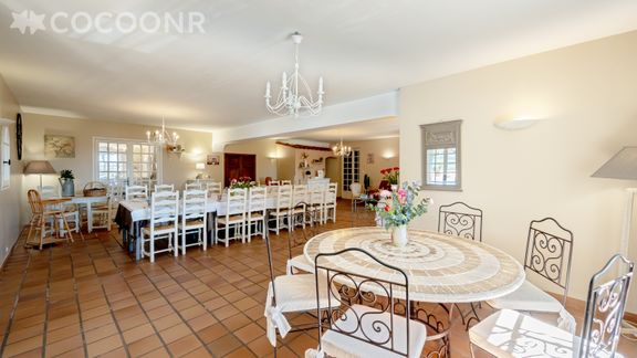 L'Agence Cocoonr/Book&Pay vous propose, à Pontevès, cette charmante maison climatisée avec piscine, d’une superficie de 400 m² et pouvant accueillir jusqu’à 15 voyageurs. Elle est composée d’une jolie pièce à vivre de 85 m² (avec cheminée), d'une cuisine équipée, de six belles chambres, huit salles de bain et neuf toilettes. Draps et serviettes inclus, nous n’attendons plus que vous !