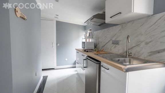 - Une cuisine équipée avec notamment : bouilloire électrique, four à micro-ondes, grille-pain, plaques de cuisson...