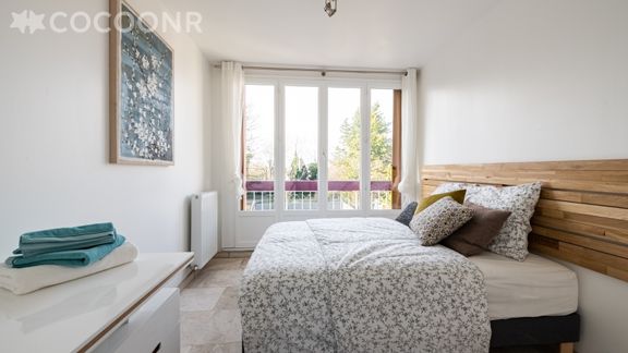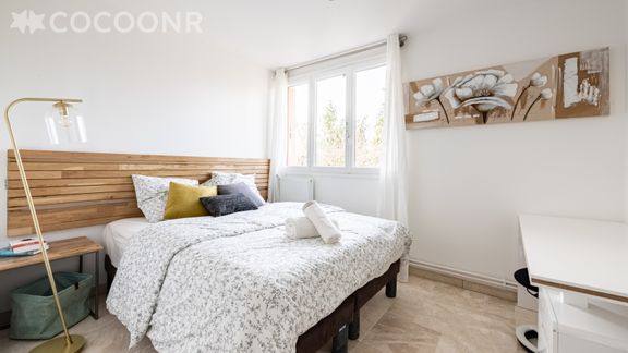 - Chambre 1 : lit double queen-size (160 cm x 200 cm), bureau, placard, salle d'eau privative avec douche.