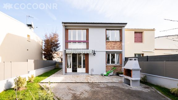 - Jardin clos de 54 m x 16 m, aménagé avec salon de jardin fixe.