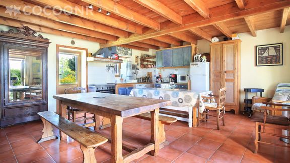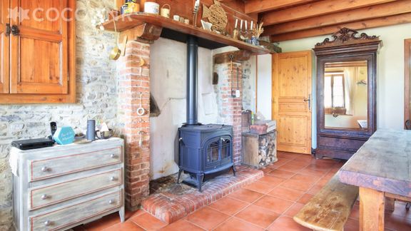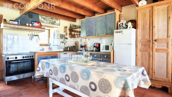 - La grande cuisine est chauffée avec un poêle à bois en hiver.