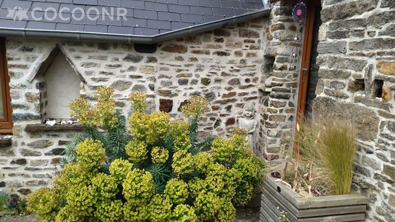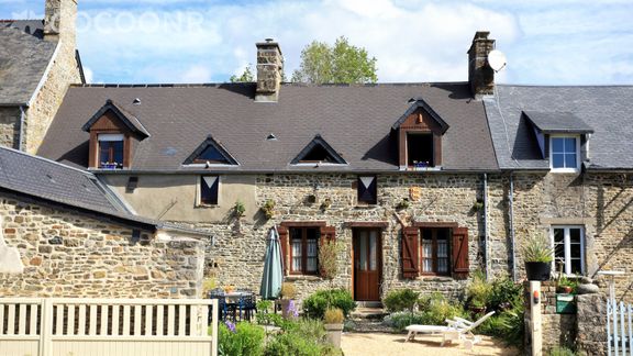 La Forge de Denn' est une maison familiale ancienne et mitoyenne, datant du milieu du XIXe siècle, fidèle à la tradition du Cotentin. Sa façade avant, en pierres, s'ouvre sur une charmante petite cour en gravier, embellie par des sculptures, des plantes et des fleurs.
