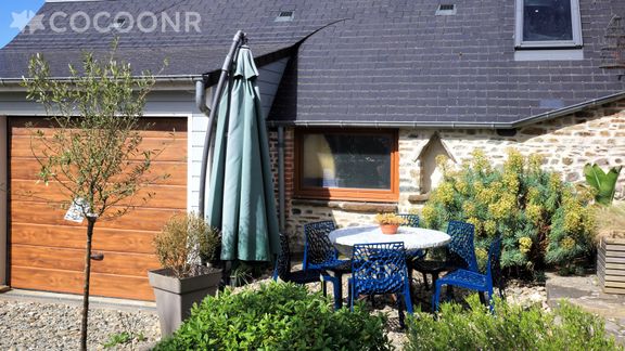 - Un beau jardin clos de 50 m², exposé au sud, équipé de transats, d'un barbecue, ainsi que d'une table et de chaises pour profiter des beaux jours. Un portail bleu mène au jardin sauvage, en friche une partie de l'année, avec un verger au fond. Ce jardin, situé à l'arrière de la maison, est accessible par un chemin de servitude partagé avec les riverains.