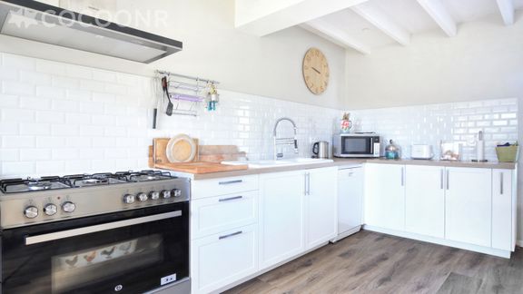 - Une cuisine équipée avec notamment : bouilloire électrique, four, four à micro-ondes, grille-pain, lave-vaisselle, piano de cuisson 5 feux