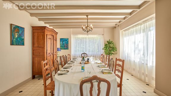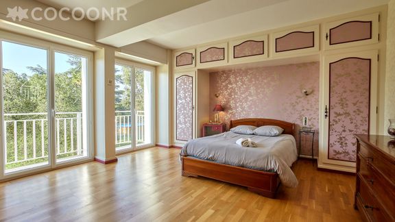 L'Agence Cocoonr/Book&Pay vous propose cette charmante maison avec piscine située à Port-Sainte-Marie, en Aquitaine, d’une superficie de 550 m² et pouvant accueillir jusqu’à 15 voyageurs. Elle est composée d’un salon/séjour de 100 m² (avec cheminée), cuisine équipée, de huit chambres, six salles de bain (avec douche et baignoire) et vous pourrez profiter d’un jardin d’environ 3 500 m². Wifi (fibre optique), draps et serviettes inclus, nous n’attendons plus que vous !