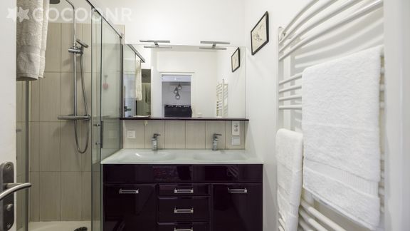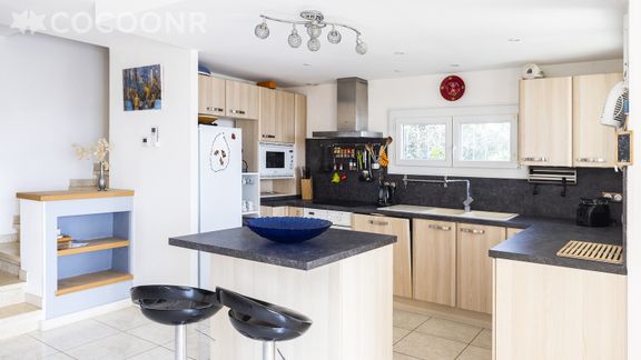 - Une cuisine équipée avec notamment : bouilloire électrique, four, four à micro-ondes, grille-pain, lave-vaisselle, plaques de cuisson...
